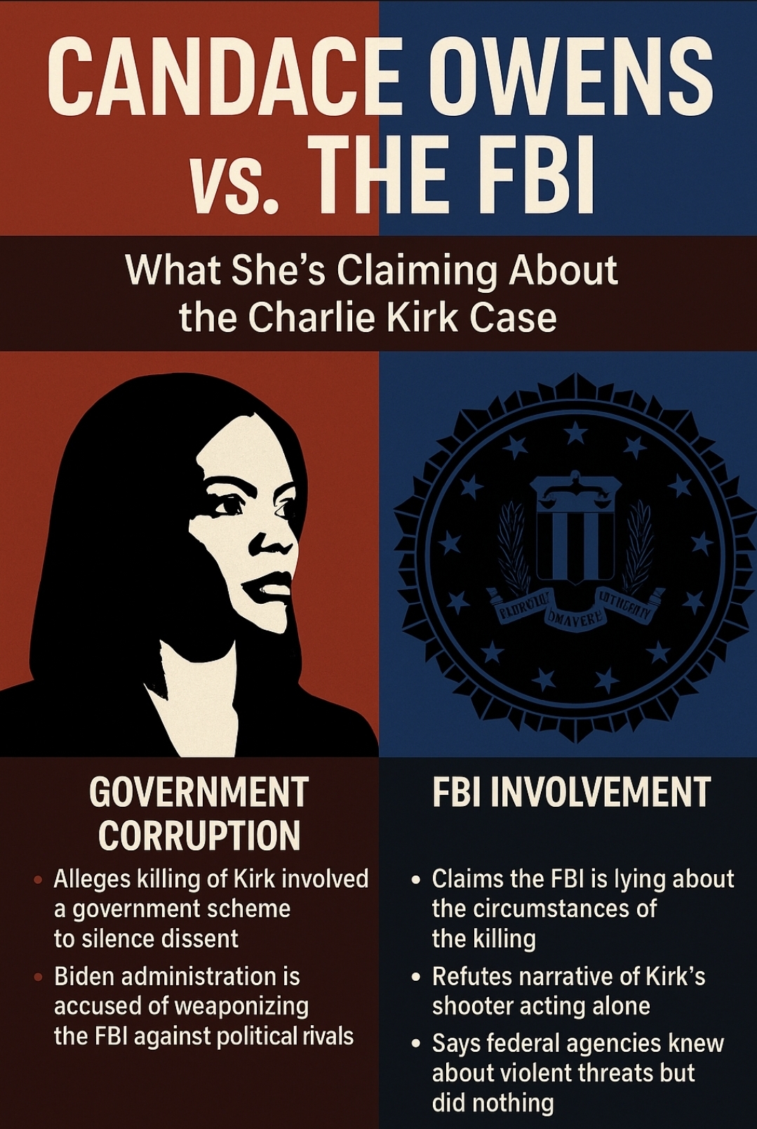 When public figures like Candace Owens challenge powerful institutions such as the FBI, the issue is no longer about political sides—it’s about transparency, accountability, and trust. Owens’ claims surrounding the Charlie Kirk case strike at the heart of a larger public concern: whether government agencies are truly serving the people, or protecting themselves and their political interests. Regardless of where one stands politically, every citizen has a stake in ensuring that investigations—especially those involving public figures—are fair, open, and free from manipulation.