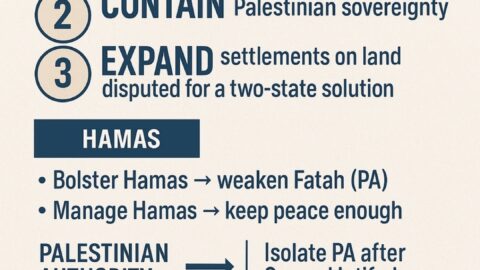 - Claim: For years, right-wing Israeli strategy—embodied by Benjamin Netanyahu—has benefited from Hamas’s rule in Gaza. Keeping Palestinians divided (Hamas in Gaza vs. PA in the West Bank) weakens prospects for a Palestinian state and creates cover to expand settlements and maintain control—sold domestically as “security.”