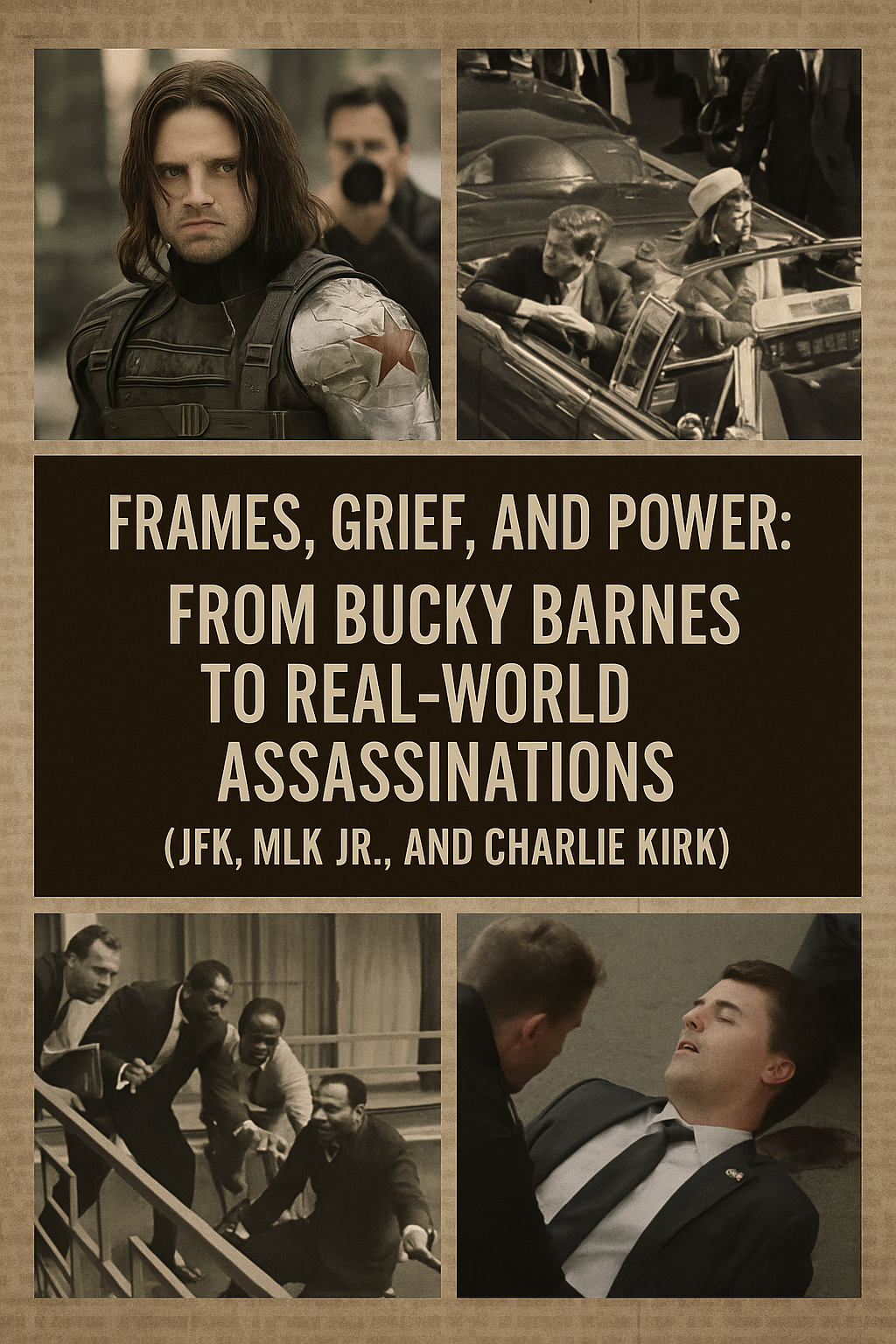 The moment I heard about the assassination of Charlie Kirk, my mind didn’t linger on the headlines—it went instantly to history. I thought of JFK, Martin Luther King Jr., and every carefully staged tragedy that followed the same choreography: a shockwave, a suspect, and a story assembled almost too quickly to question. Then I found myself re-watching Captain America: Civil War, not as escapism, but as diagnosis. The film’s emotional engine—the framing of Bucky Barnes for a bombing he didn’t commit—feels less like fiction and more like a mirror held up to how power manages public grief.