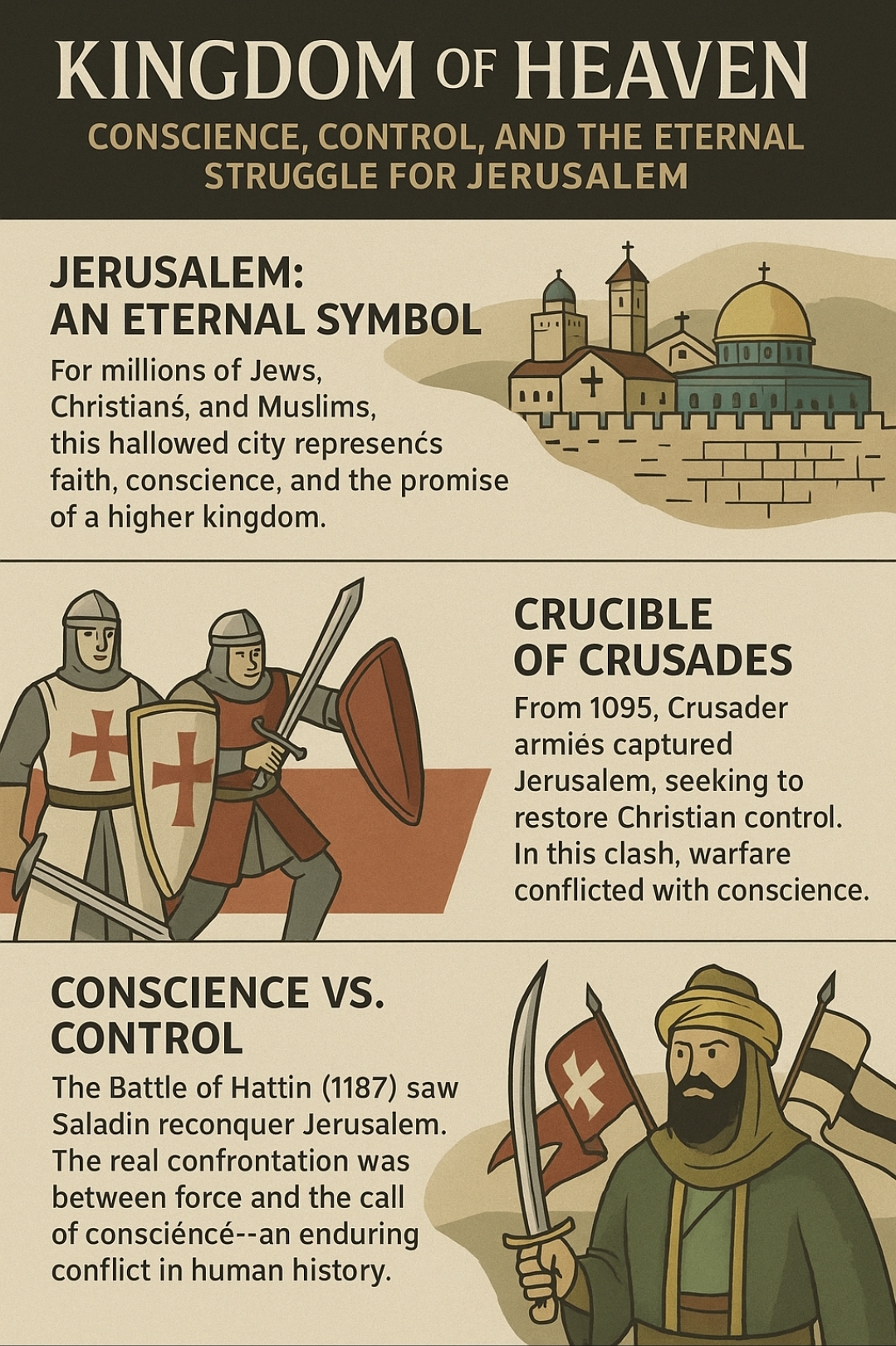 Kingdom of Heaven is not just about medieval Jerusalem. It is about every city, every nation, every age. The walls may change, the slogans may change, but the struggle is the same: will we build kingdoms of conquest—or a kingdom of conscience?