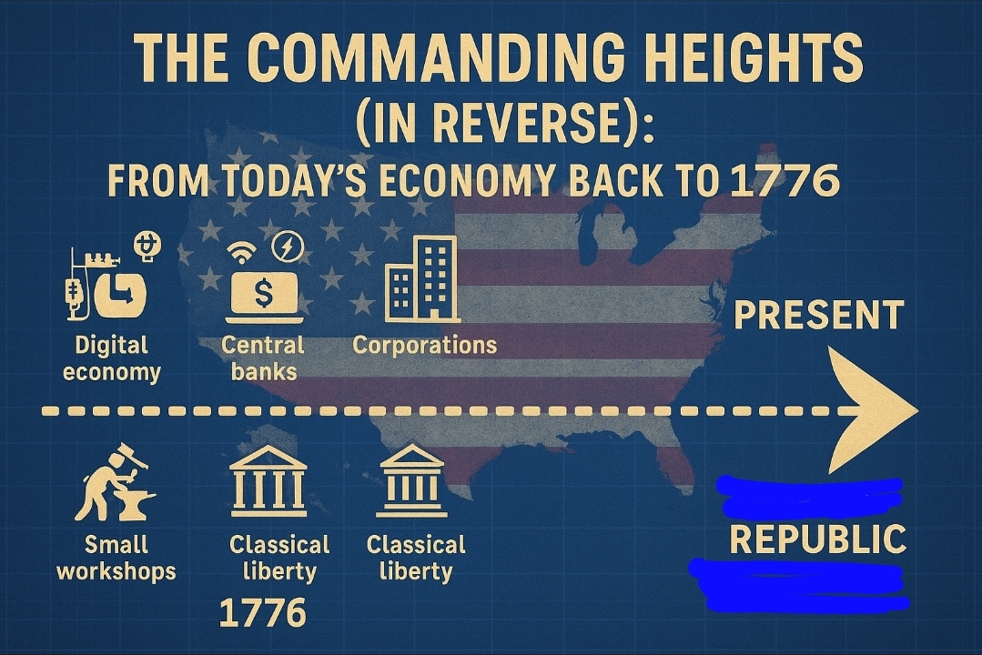 Reverse-engineering our economy shows a long migration of power—from households and towns to platforms and central desks. Each step brought real gains, but also fragility and dependence. We don’t need nostalgia for 1776; we need plural, accountable, human-scaled systems that borrow the best of scale without erasing local voice. The fix isn’t a revolution; it’s many small repatriations of power—money, markets, and decision rights—back to the people who live with the outcomes.