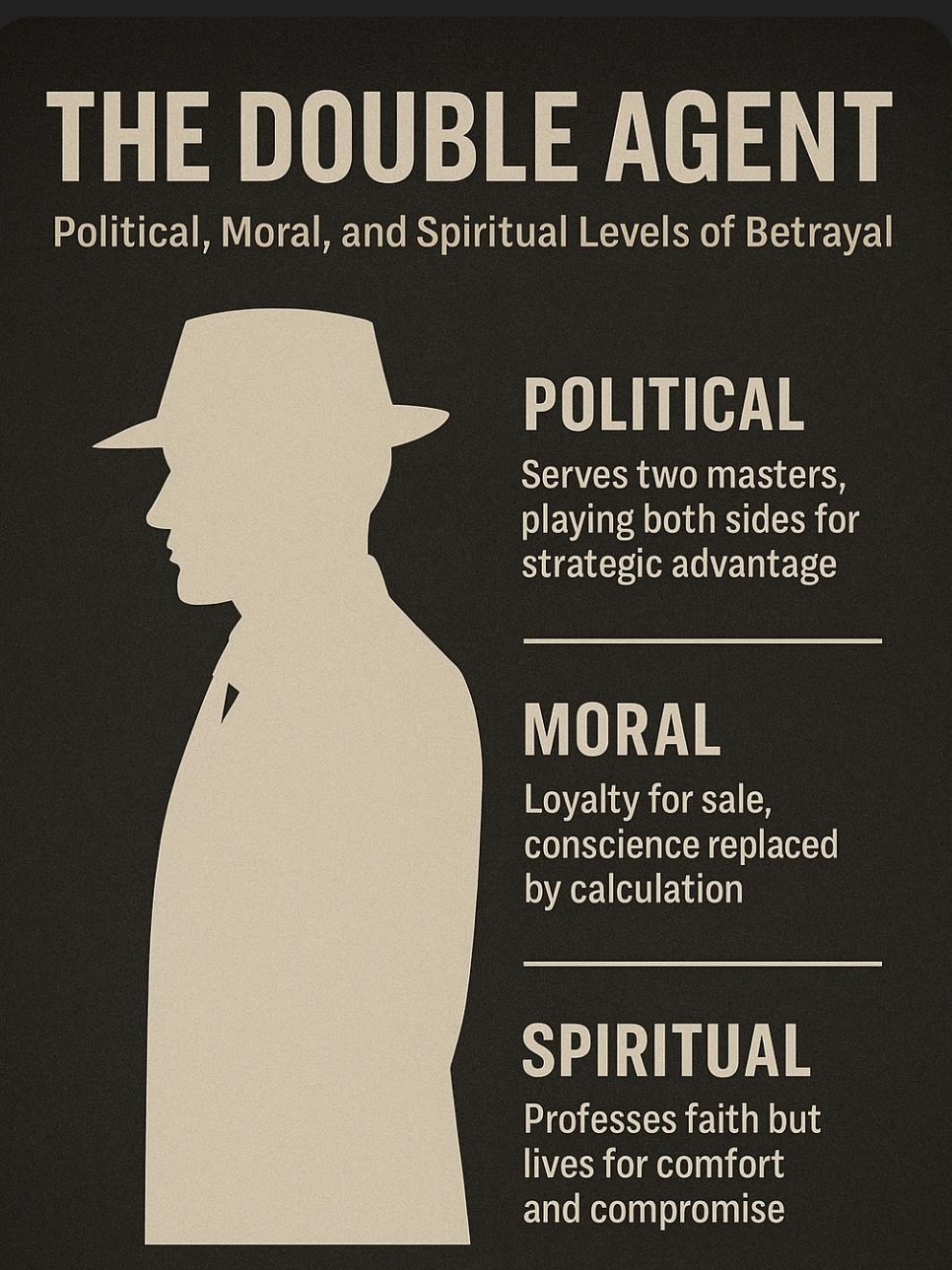 In intelligence terms, it’s someone playing both sides, pretending to serve one master while advancing the interests of another. But in moral terms, it’s much deeper. It’s a manifestation of divided allegiance — loyalty for sale, conscience replaced by calculation.
