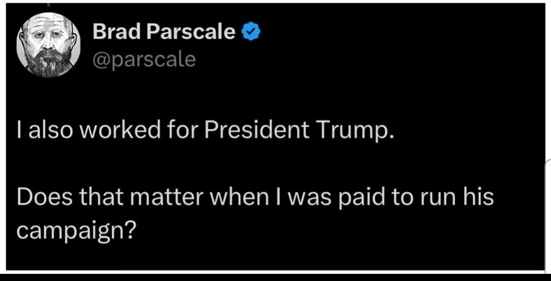 “I also worked for President Trump. Does that matter when I was paid to run his campaign?” — Brad Parscale